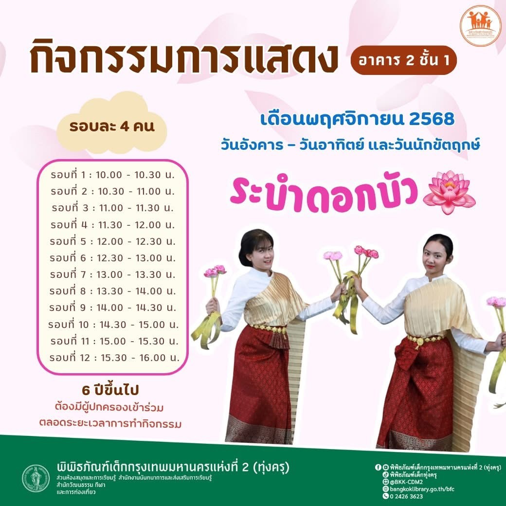 ระบำดอกบัว เป็นการแสดงนาฏศิลป์ไทยที่ประดิษฐ์ขึ้นใหม่ มิใช่ระบำดั้งเดิมในอดีต นิยมใช้แสดงในงานมงคลงานพิธีสำคัญ และการต้อนรับผู้มาเยือน การแสดงชุดนี้ได้รับแรงบันดาลใจจาก ดอกบัว ซึ่งถือเป็นสัญลักษณ์สำคัญในศาสนา และวัฒนธรรมไทยสื่อถึงความดีงาม ความบริสุทธิ์ ความเจริญงอกงาม ตลอดจนการตรัสรู้ในพระพุทธศาสนาเอกลักษณ์ของการแสดงอยู่ที่การถ่ายทอดความงดงามของ ดอกบัวที่ค่อย ๆ โผล่ขึ้นจากผิวน้ำและเบ่งบาน ผ่านท่ารำที่อ่อนช้อย ละมุนละไม และสง่างาม ผู้แสดงมักถือดอกบัวหรือใช้เครื่องประกอบที่สื่อถึงรูปทรงของดอกบัว เพื่อสร้างอารมณ์และบรรยากาศให้ชัดเจนยิ่งขึ้น