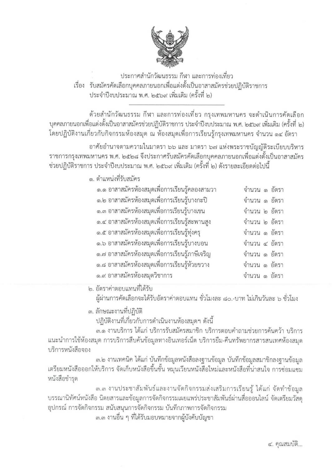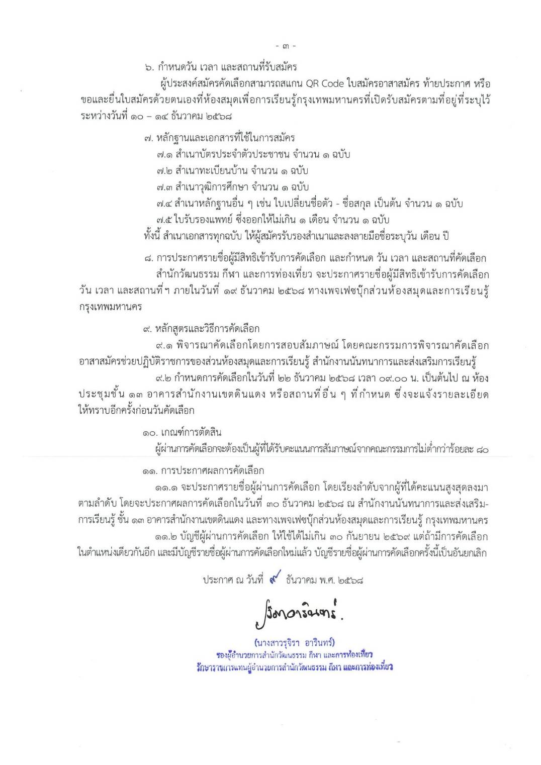 ประกาศสำนักวัฒนธรรม กีฬา และการท่องเที่ยว
