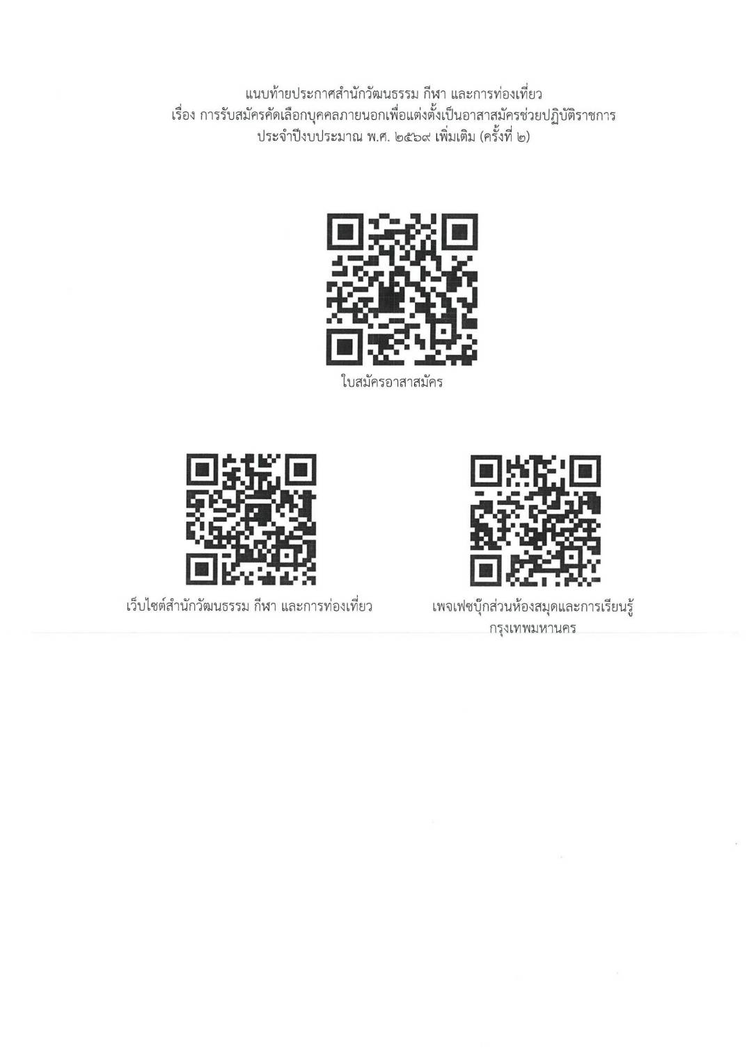 เรื่อง รับสมัครคัดเลือกบุคคลภายนอกเพื่อแต่งตั้งเป็นอาสาสมัครช่วยปฏิบัติราชการ ประจำปีงบประมาณ พ.ศ. 2569 เพิ่มเติม (ครั้งที่ 2)