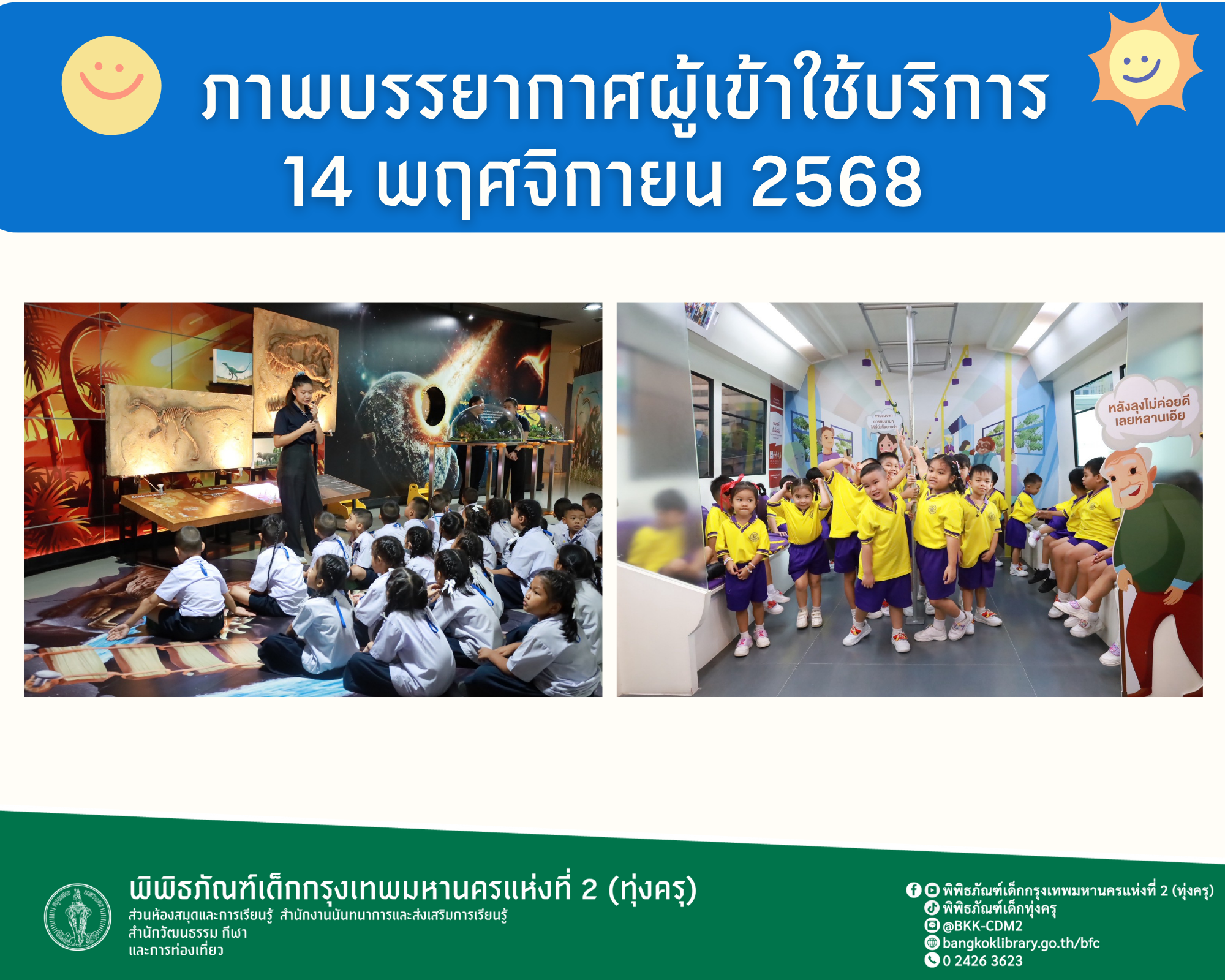 ภาพบรรยากาศการทัศนศึกษาของน้อง ๆจากโรงเรียนเอี่ยมสุรีย์(อนุบาลเมืองสมุทรปราการ) เเละโรงเรียนรุ่งปัญญาวิทย์ ณ พิพิธภัณฑ์เด็กกรุงเทพมหานครแห่งที่ 2 (ทุ่งครุ) วันศุกร์ที่ 14 พฤศจิกายน 2568