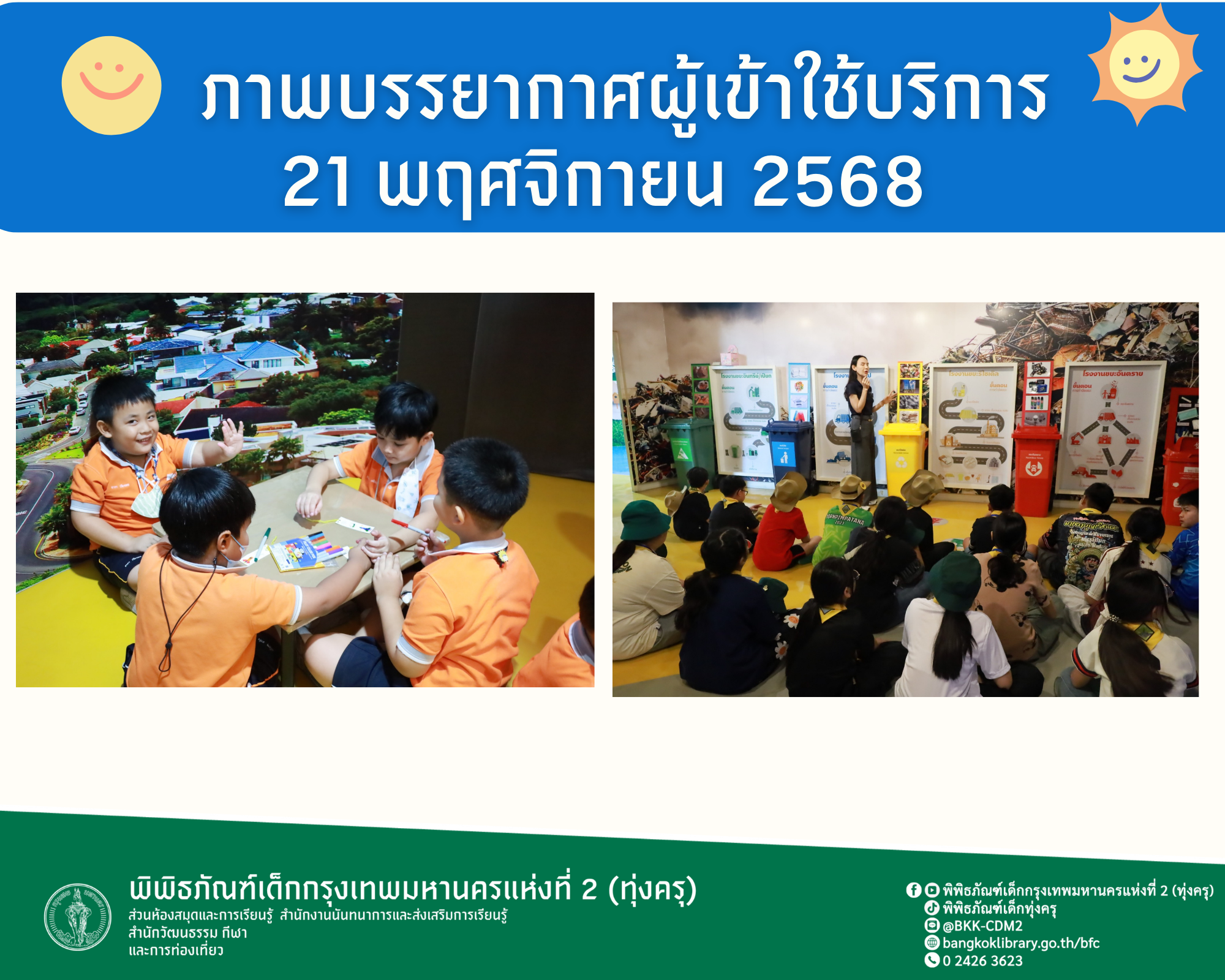 ภาพบรรยากาศการทัศนศึกษาของน้อง ๆ จากโรงเรียนอำนวยวิทย์ เเละโรงเรียนพรพิมพ์พัฒนา ณ พิพิธภัณฑ์เด็กกรุงเทพมหานครแห่งที่ 2 (ทุ่งครุ) วันศุกร์ที่ 21 พฤศจิกายน 2568