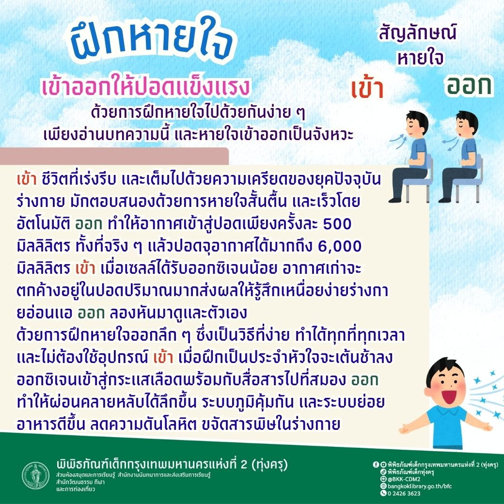 เข้า ชีวิตที่เร่งรีบ เเละเต็มไปด้วยความเครียดของยุคปัจจุบันร่างกายมักตอบสนองด้วยการหายใจสั้นตื้น เเละเร็วโดยอัตโนมัติ ออก ทำให้อากาศเข้าสู่ปอดเพียงครั้งละ 500 มิลลิลิตร ทั้งที่จริง ๆ เเล้วปอดจุอากาศได้มากถึง 6,000มิลลิลิตร เข้า เมื่อเซลล์ได้รับออกซิเจนน้อย อากาศเก่าจะตกค้างอยู่ในปอดปริมาณมากส่งผลให้รู้สึกเหนื่อยง่ายร่างกายอ่อนเเอ ออก ลองหันมาดูเเละตัวเองด้วยการฝึกหายใจออกลึก ๆ ซึ่งเป็นวิธีที่ง่ายทำได้ทุกที่ทุกเวลาเเละไม่ต้องใช้อุปกรณ์ เข้า เมื่อฝึกเป็นประจำหัวใจจะเต้นช้าลง ออกซิเจนเข้าสู่กระเเสเลือดพร้อมกับสื่อสารไปที่สมอง ออก ทำให้ผ่อนคลายหลับได้ลึกขึ้น ระบบภูมิคุ้มกัน เเละระบบย่อยอาหารดีขึ้นลดความดันโลหิต ขจัดสารพิษในร่างกาย