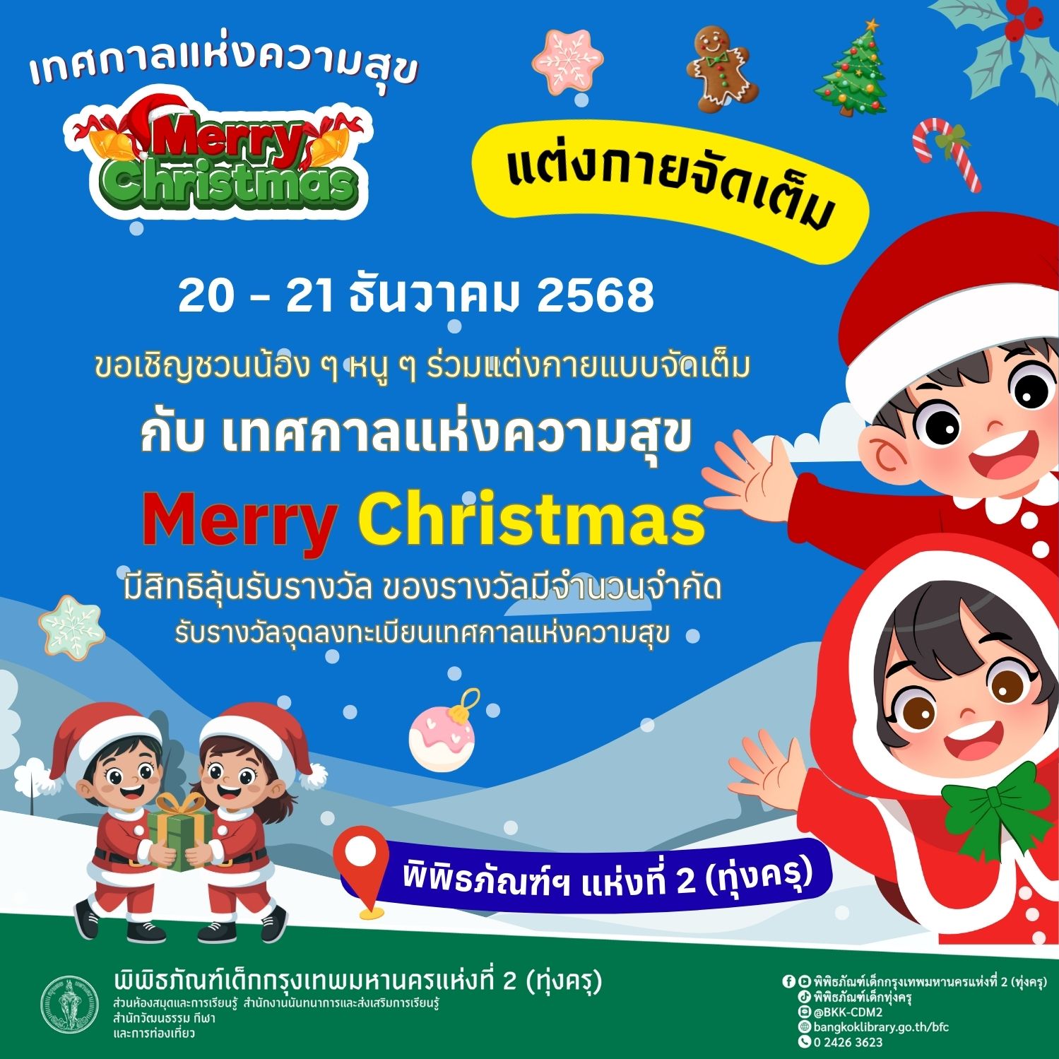เทศกาลแห่งความสุข Merry Christmas (Learning together, Creating the future) วันที่ 20 – 21 ธันวาคม 2568 นี้ เพียงร่วมสนุกด้วยการแต่งกายชุดคริสต์มาสแบบจัดเต็ม