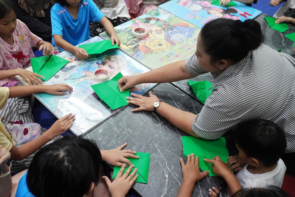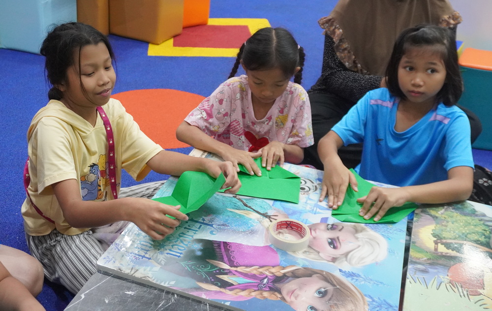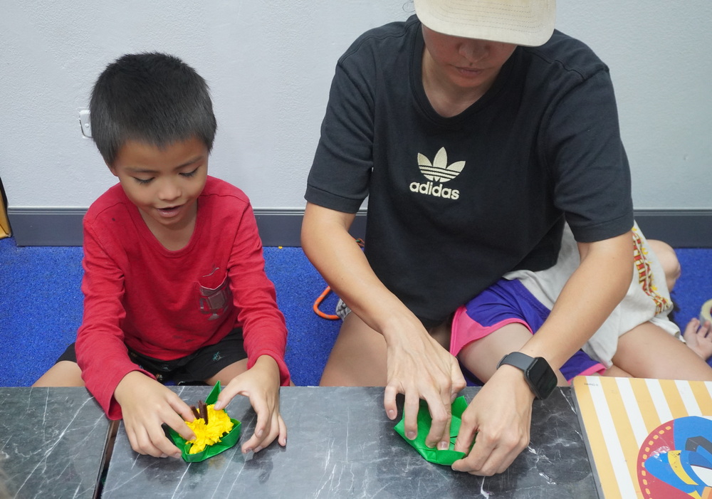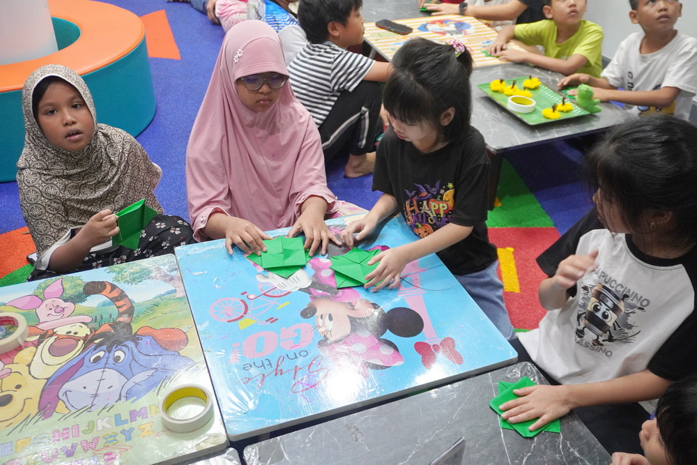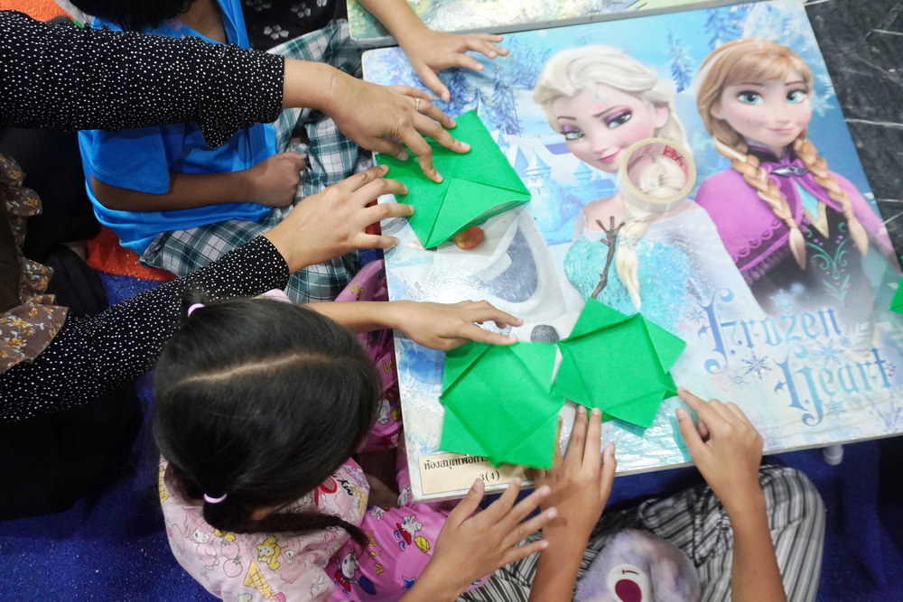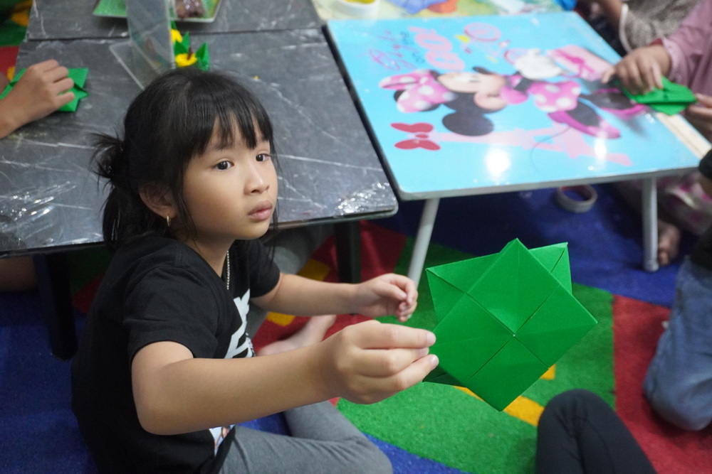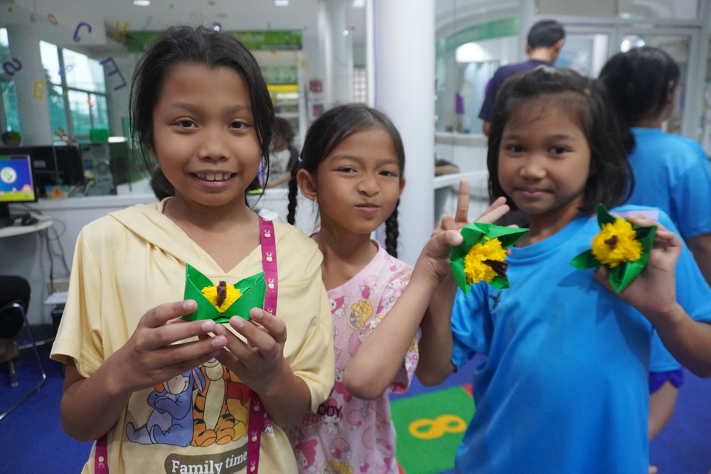 วันนี้น้องๆ ได้ฝึกพับกระทงน่ารักๆ สีสันสดใส