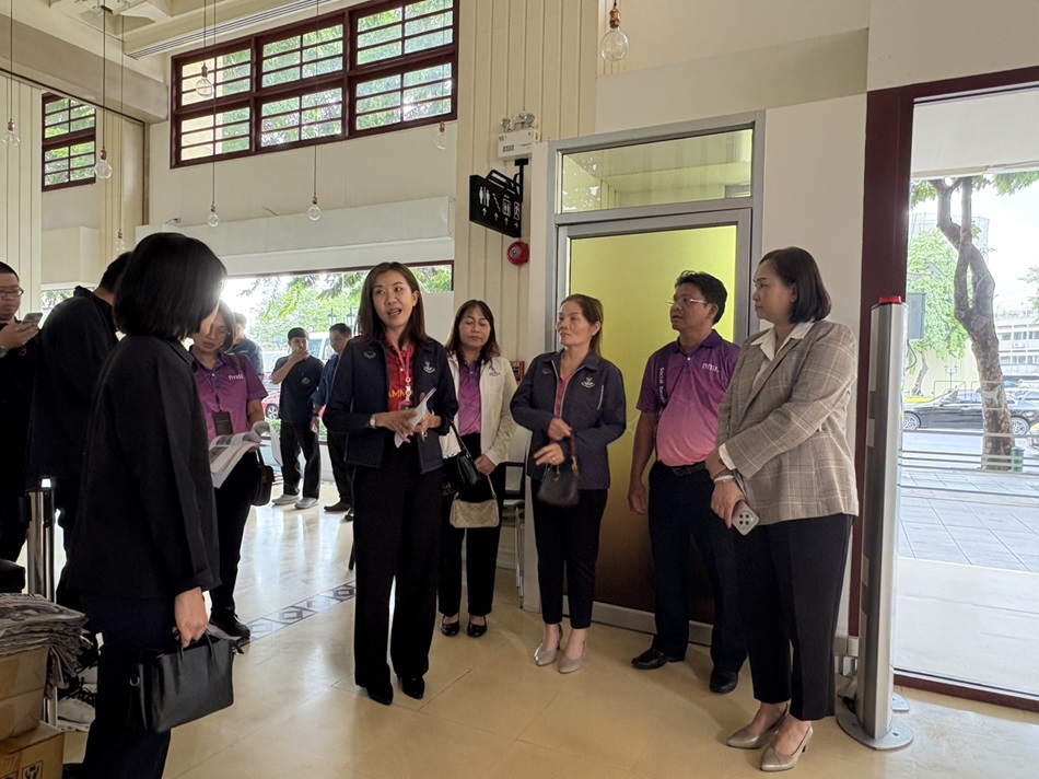 รอง ผอ.สวท. (นางวิไล เจริญชัยสกุล) สำรวจพื้นที่อาคารไปรสนียาคาร เพื่อกำหนดแนวทางในการรักษาความปลอดภัย