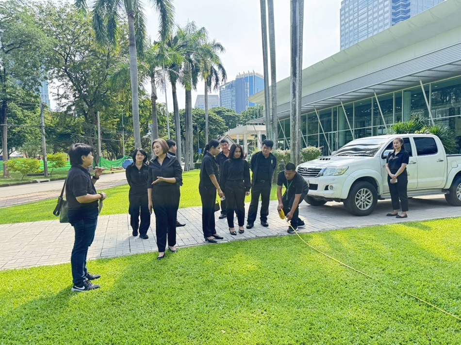 รอง ผอ.สวท. (นางวิไล เจริญชัยสกุล) สำรวจพื้นที่อาคารไปรสนียาคาร เพื่อกำหนดแนวทางในการรักษาความปลอดภัย